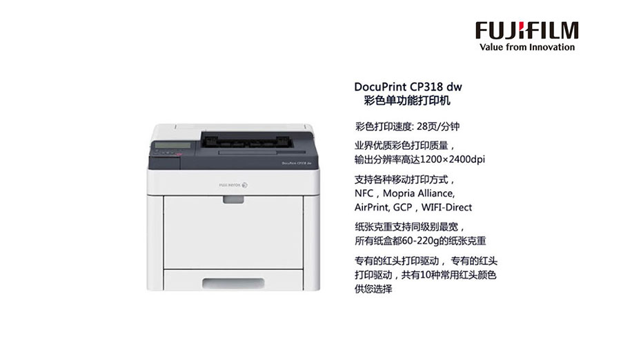 主要產(chǎn)品:富士膠片(原富士施樂)打印機(jī)、多功能一體機(jī)、智能型彩色數(shù)碼多功能機(jī)、智能辦公解決方案,生產(chǎn)型數(shù)字印刷系統(tǒng)、大幅面工程系統(tǒng),文印管理外包服務(wù),文檔(含數(shù)字文檔)管理軟件及系統(tǒng)