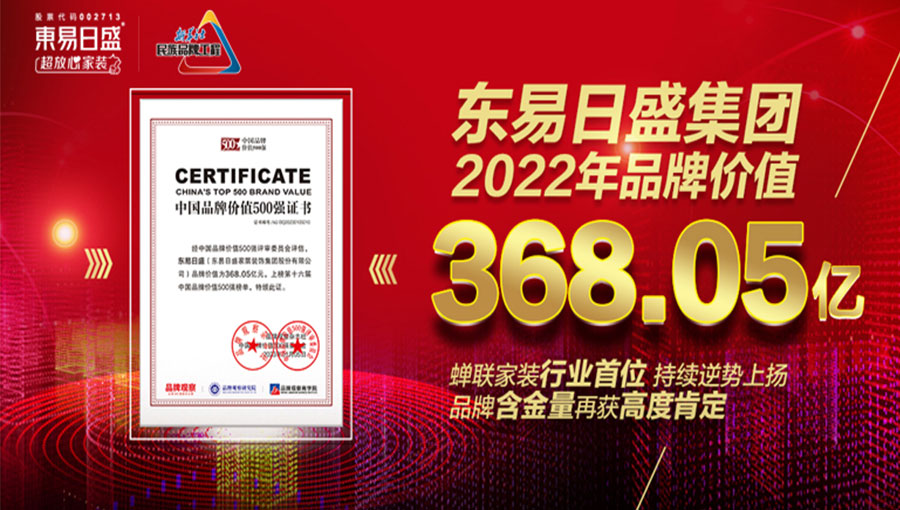 東易日盛家居裝飾集團(tuán)股份有限公司始創(chuàng)于1997年,目前已發(fā)展為一家專業(yè)化、品牌化、數(shù)字化、規(guī)?;?、產(chǎn)業(yè)化的大型上市家裝集團(tuán)公司(股票代碼:002713),連續(xù)多年居于《中國(guó)最具價(jià)值品牌500強(qiáng)》家裝行業(yè)前列,品牌價(jià)值高達(dá)368.05億元。