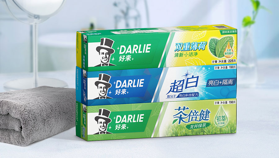 目前DARLIE好來牙膏共有數(shù)十個(gè)品種、多種規(guī)格(18g-250g),其中銷往中國大陸市場包括經(jīng)典的雙重薄荷系列、茶倍健系列、超白系列、專研護(hù)齦系列、抗敏感系列、透心爽系列,兒童牙膏系列及新增了白.酵素系列和星耀白系列等20個(gè)品種,另外還有多個(gè)品種同時(shí)銷往新加坡、馬來西亞、泰國、中國香港和中國臺(tái)灣等市場。