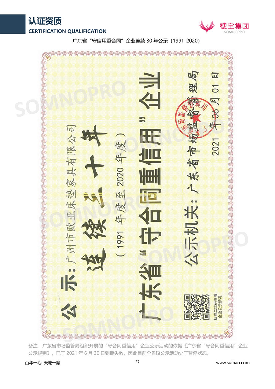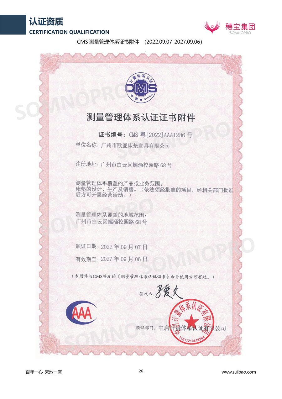本著高品質(zhì)、高效率、重管理的原則,穗寶已通過(guò)ISO9001質(zhì)量管理體系認(rèn)證證書(shū)、ISO14001環(huán)境管理體系認(rèn)證證書(shū)、ISO45001職業(yè)健康安全管理體系認(rèn)證證書(shū)、中國(guó)環(huán)境標(biāo)志產(chǎn)品認(rèn)證證書(shū)、家居綠色環(huán)保領(lǐng)跑品牌、綠色正品家居品牌、企業(yè)標(biāo)準(zhǔn)“綠色領(lǐng)跑者”證書(shū)、CMS測(cè)量管理體系證書(shū)、CMS測(cè)量管理體系證書(shū)附件、廣東省“守信用重合同”企業(yè)、廣州歐亞-納稅信用A級(jí)納稅人(連續(xù)5年:2018-2022)、2024年中國(guó)500最具價(jià)值品牌,品牌價(jià)值高達(dá)302.89億元、廣東高價(jià)值商標(biāo)品牌(穗寶)、廣東省重點(diǎn)商標(biāo)保護(hù)名錄納入證明、廣州市勞動(dòng)關(guān)系和諧企業(yè)AA級(jí)。穗寶自創(chuàng)立以來(lái),不斷致力于新產(chǎn)品的設(shè)計(jì)與研發(fā),多次在國(guó)內(nèi)家具展會(huì)屢獲獎(jiǎng)項(xiàng),產(chǎn)品暢銷國(guó)內(nèi)外,深受客戶一致好評(píng)。