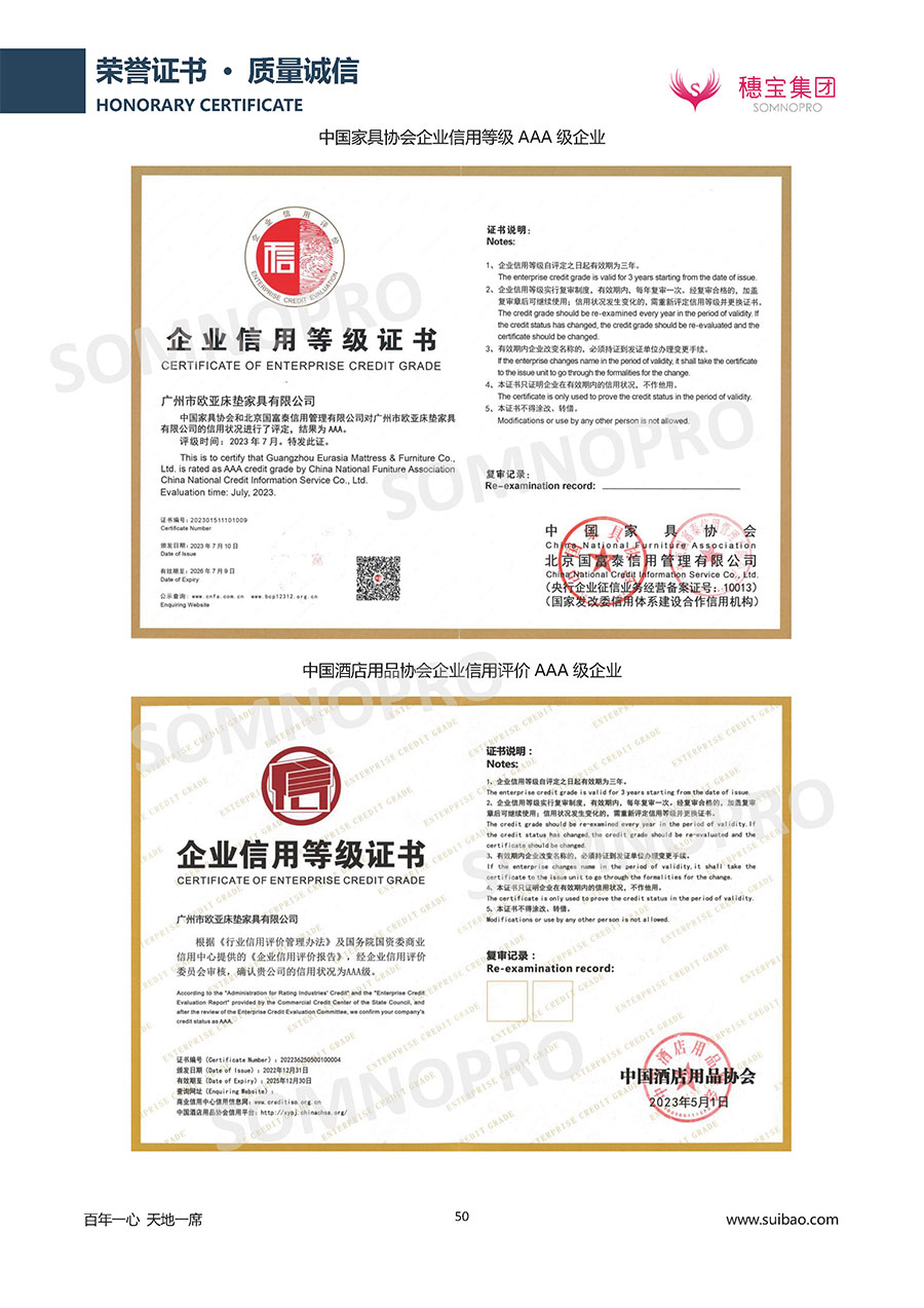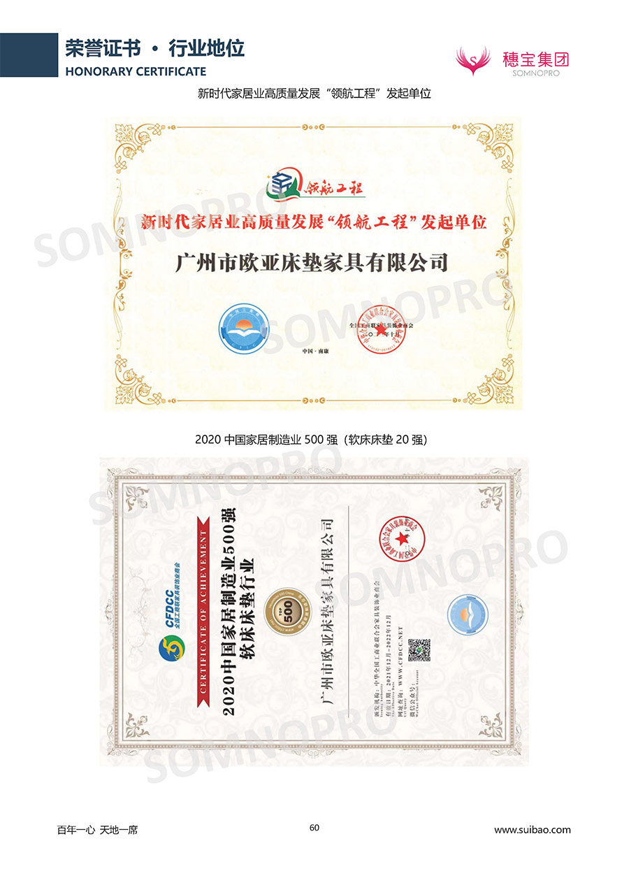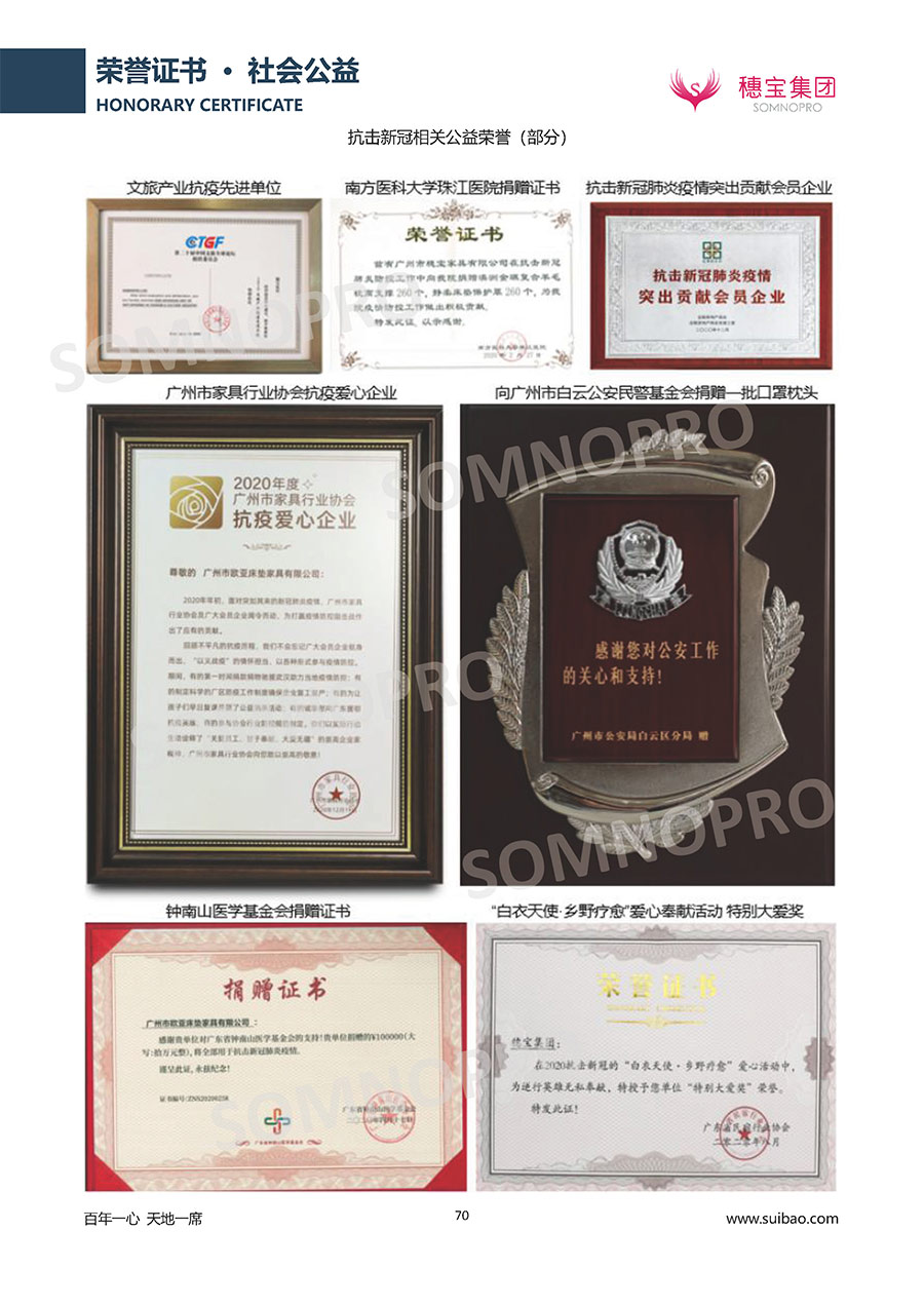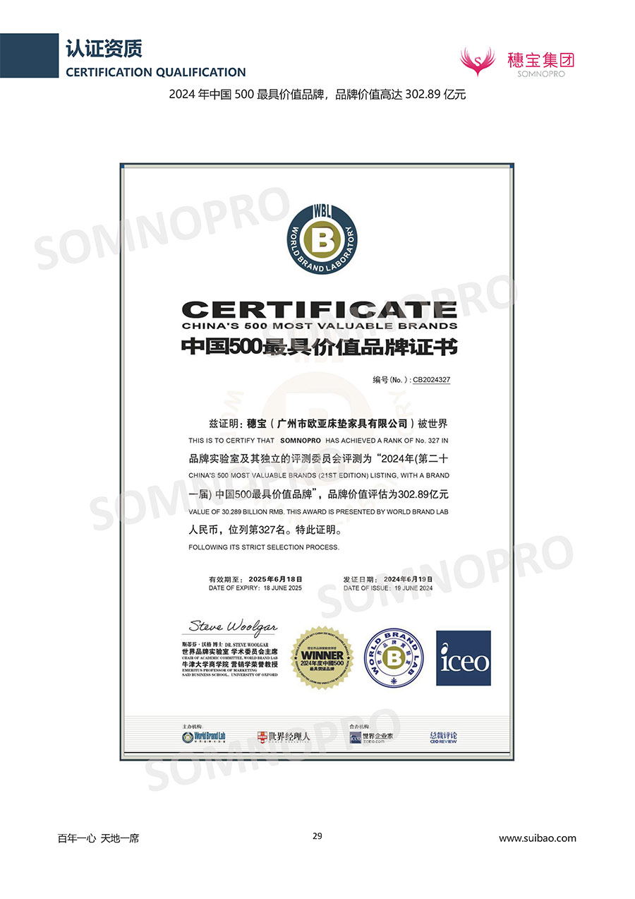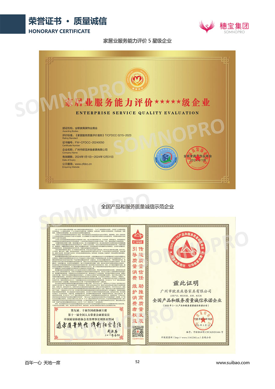 自1971年獨(dú)立研發(fā)生產(chǎn)出專屬國(guó)人的彈簧床墊,穗寶關(guān)于優(yōu)質(zhì)深度睡眠的研究已有半個(gè)世紀(jì)的歷史。穗寶一直專注床墊,專注中國(guó)消費(fèi)者的睡眠研究,針對(duì)中國(guó)人特點(diǎn)進(jìn)行優(yōu)化創(chuàng)新,不斷提升國(guó)人的睡眠體驗(yàn),只為成就每個(gè)晚上8小時(shí)的優(yōu)質(zhì)深度睡眠。憑借不斷革新的研發(fā)科技和深受消費(fèi)者信賴的產(chǎn)品品質(zhì),穗寶集團(tuán)旗下品牌和產(chǎn)品屢獲國(guó)內(nèi)外大獎(jiǎng),連續(xù)20年榮膺中國(guó)500最具價(jià)值品牌,品牌價(jià)值高達(dá)302.89億元。