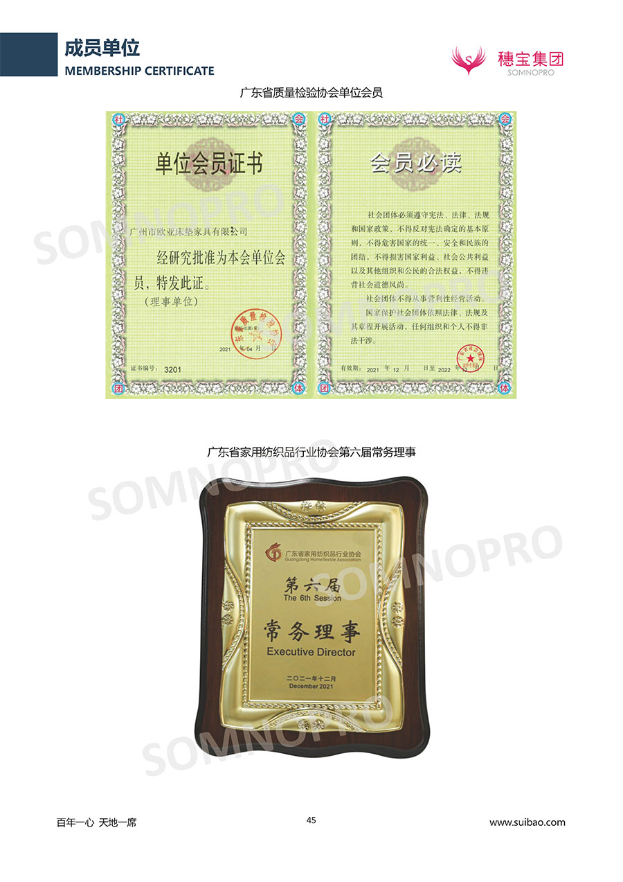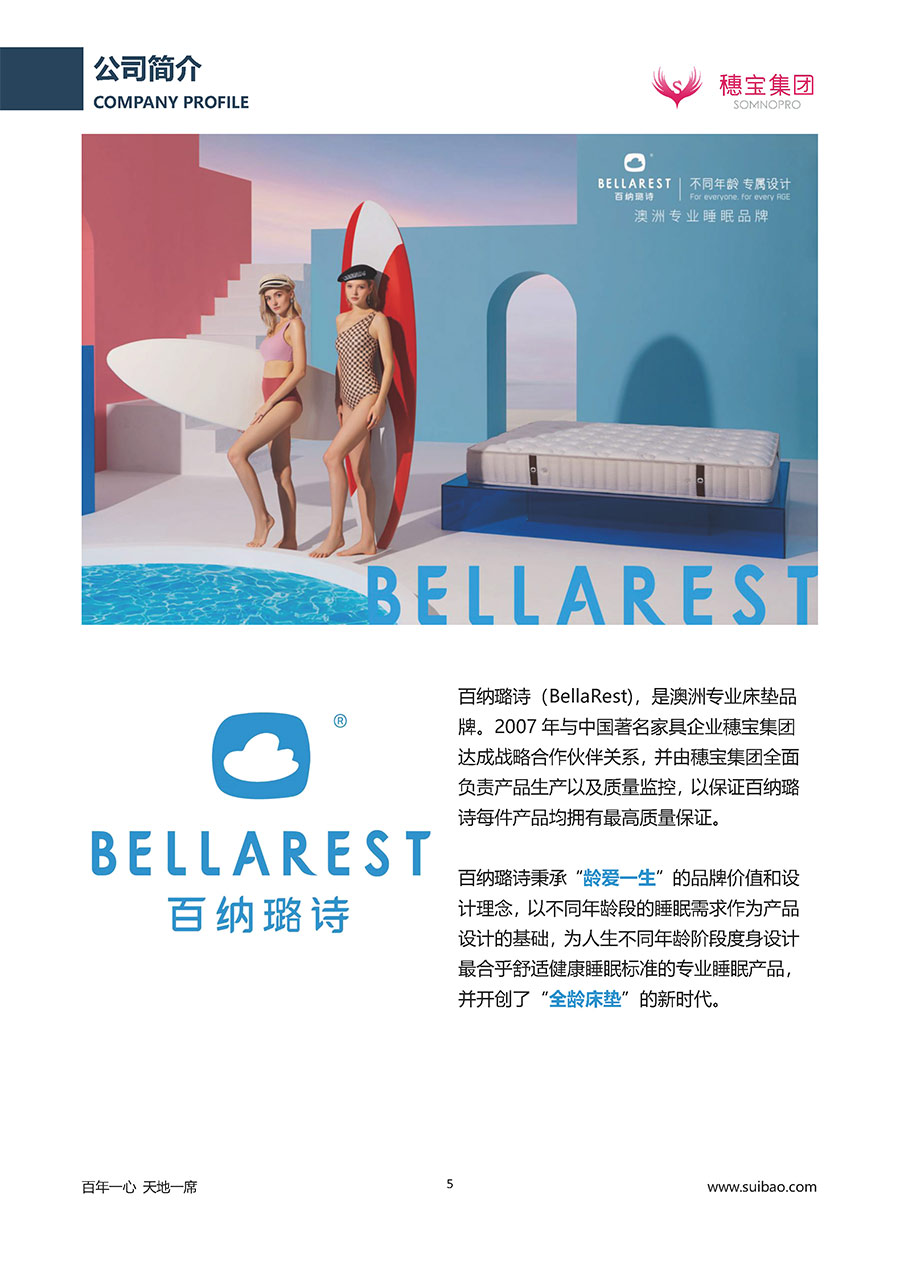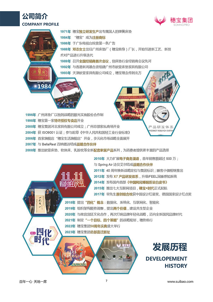 半個(gè)世紀(jì)的付出,穗寶集團(tuán)在深度睡眠領(lǐng)域收獲非凡成就,贏得業(yè)界與社會(huì)的一致贊譽(yù)。作為大家居行業(yè)的品質(zhì)倡導(dǎo)者,穗寶集團(tuán)不斷創(chuàng)新,豐富品牌實(shí)力,致力推動(dòng)中國(guó)床墊產(chǎn)業(yè)發(fā)展。至今,穗寶集團(tuán)旗下?lián)碛卸鄠€(gè)來(lái)自世界各地的優(yōu)質(zhì)品牌,包括:穗寶、詩(shī)貝艾爾、百納璐詩(shī)、睡客小鎮(zhèn)、Mr.Z早先生等;此外,穗寶集團(tuán)從世界各地甄選適合不同消費(fèi)者的優(yōu)質(zhì)睡眠產(chǎn)品,定制屬于您的睡眠空間。如今,穗寶集團(tuán)形成以研發(fā)、生產(chǎn)和銷售床墊為主營(yíng)業(yè)務(wù),涉及家具、家居裝飾、酒店配套等多項(xiàng)業(yè)務(wù)的企業(yè)群體。