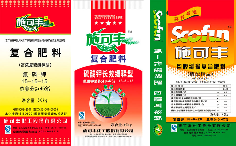 公司主導產品施可豐牌復合肥是采用國內最新工藝配方及檢測標準,選用大量進口原料,利用低溫轉化中和噴漿造粒法、氨化造粒法生產的優(yōu)質高效肥料,具有濃度高、養(yǎng)分全、易吸收、肥效長、改良土壤、提高果實品質和增強作物抗病能力等特點,適用于小麥、水稻、玉米、棉花、大豆、花生、蔬菜、果樹、花卉等,是發(fā)展無公害農產品的理想肥料。“施可豐”牌復合肥被評為“山東名牌產品”“中國農民喜愛的農資品牌”稱號,“農化服務明星企業(yè)” “中國農資行業(yè)最具價值品牌”等榮譽稱號。