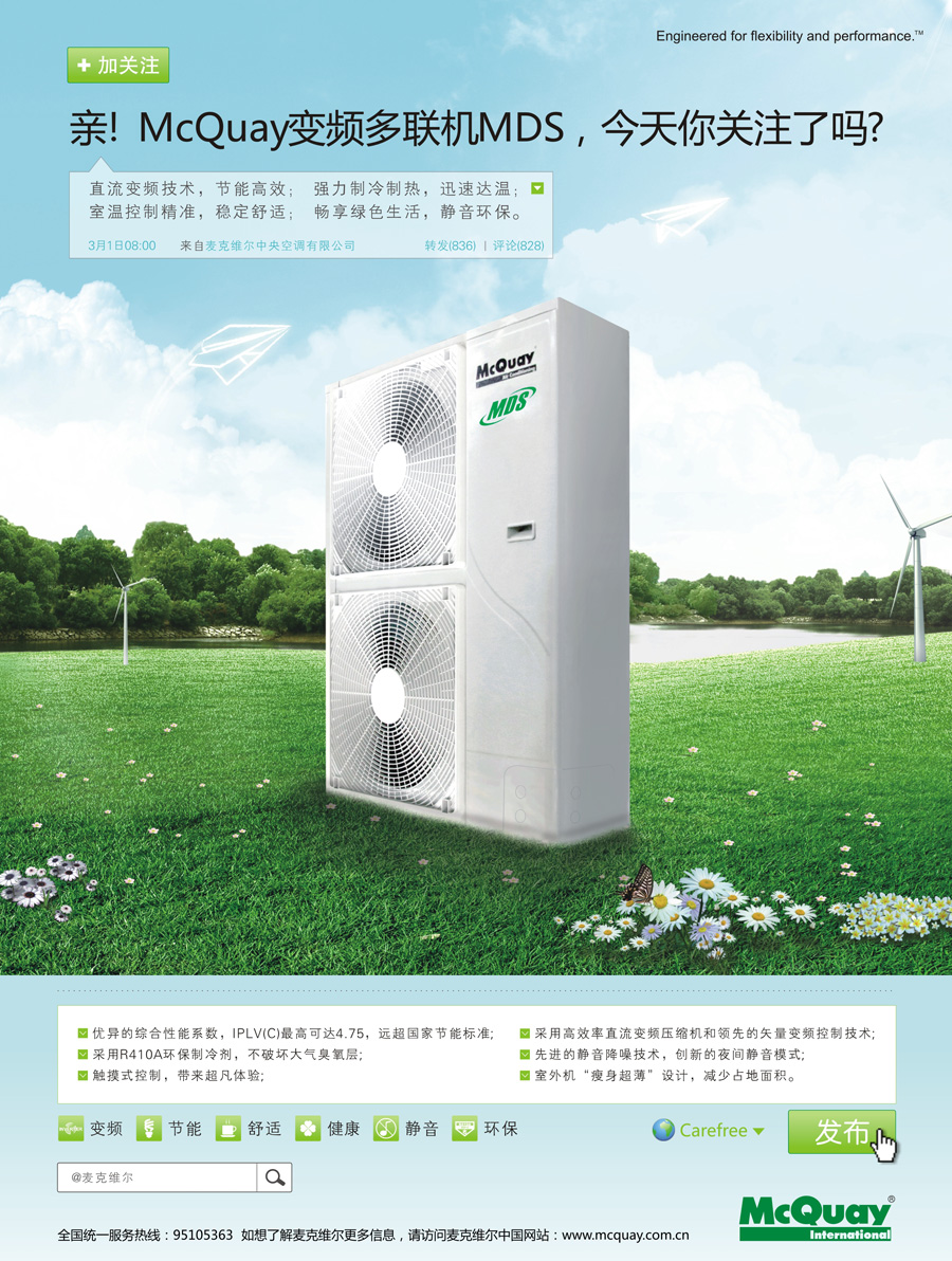 主要產(chǎn)品:McQuay中央空調(diào)